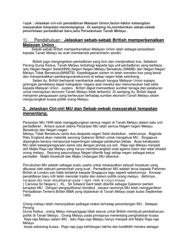Cadangan Jawapan Kertas 3 Tingkatan 5 Bab 4 Malayan Union Pdf