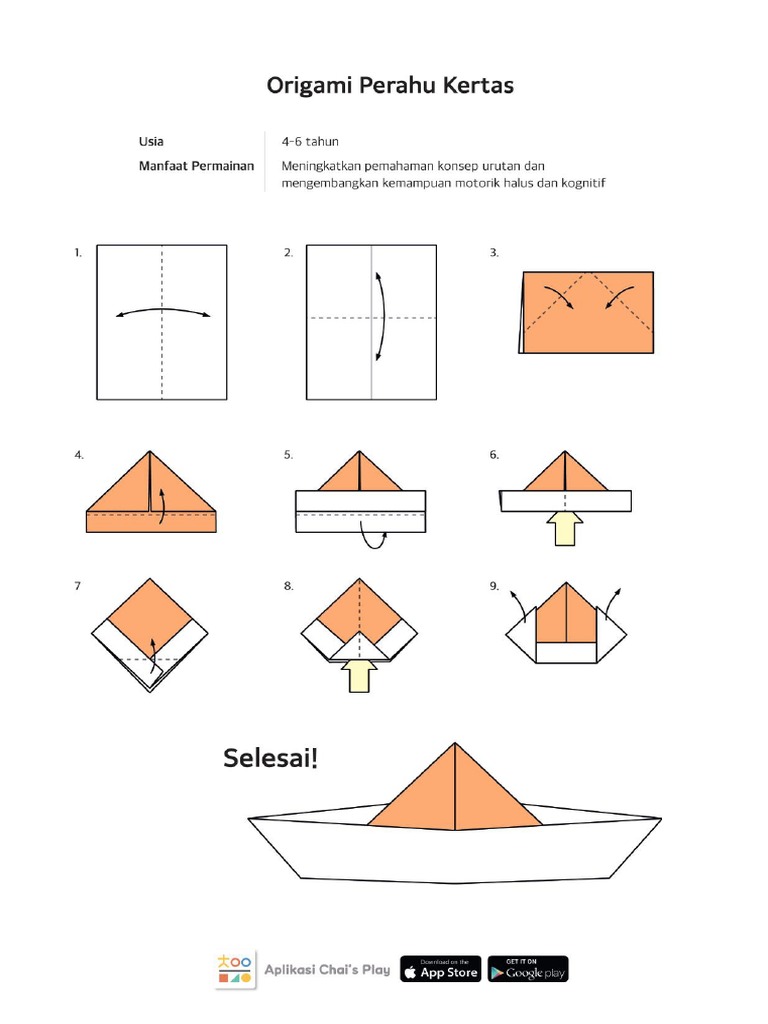 Pendidik mengedarkan sehelai kertas warna kepada setiap kanak-kanak. Berikut ini adalah tips Cara Membuat Origami Perahu sampan dari KertasSiapkan kertas berbentuk persegi panjang semakin besar ukuran kertas semakin besar pu. Hal tersebut terasa menyenangkan untuk mengusir kebosanan selama hujan berlangsung.