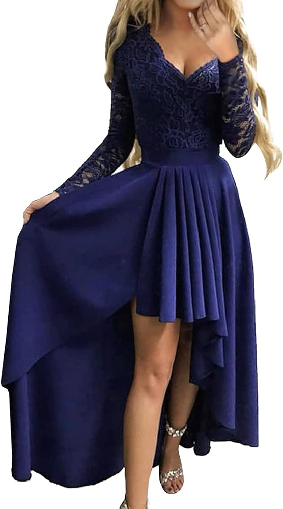 Buy Scarisee Women S High Low Prom Dresses Lace Beaded Bridesmaid Evening Cocktail Party Gowns Formal Lavender 08 At Amazon In